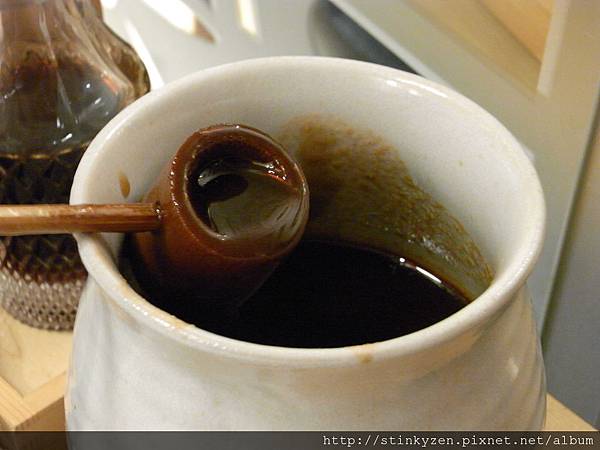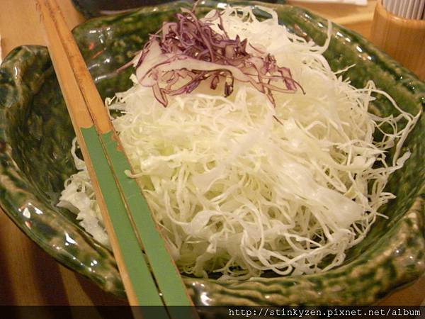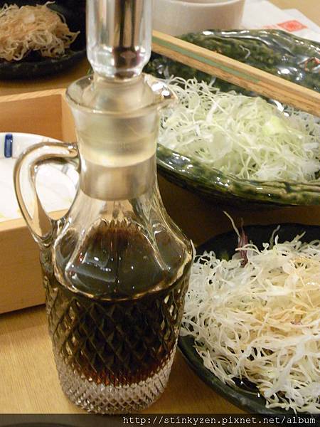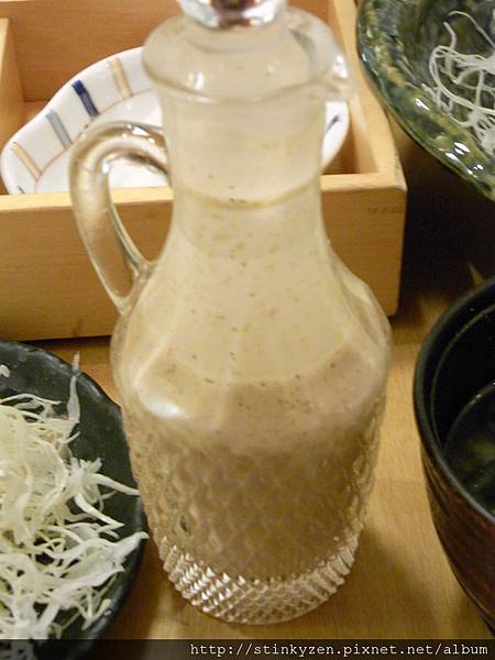 高麗菜絲的醬:黑色的是桌上本來就有的,味道很像酒醋醬,而白色的醬是後來跟服務人員要的,因為看到隔壁桌的有XD,而味道像是胡麻醬